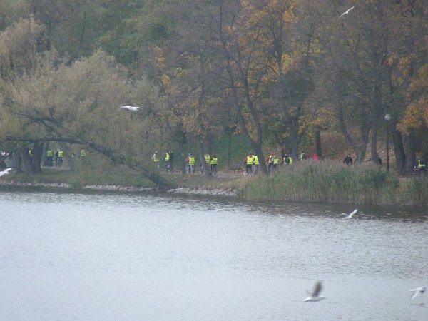 ubrani w kamizelki odblaskowe spotkali się na parkingu obok restauracji Yellow. Dokładnie o 17:00 ruszyli. Jadąc ścieżkami
