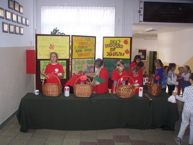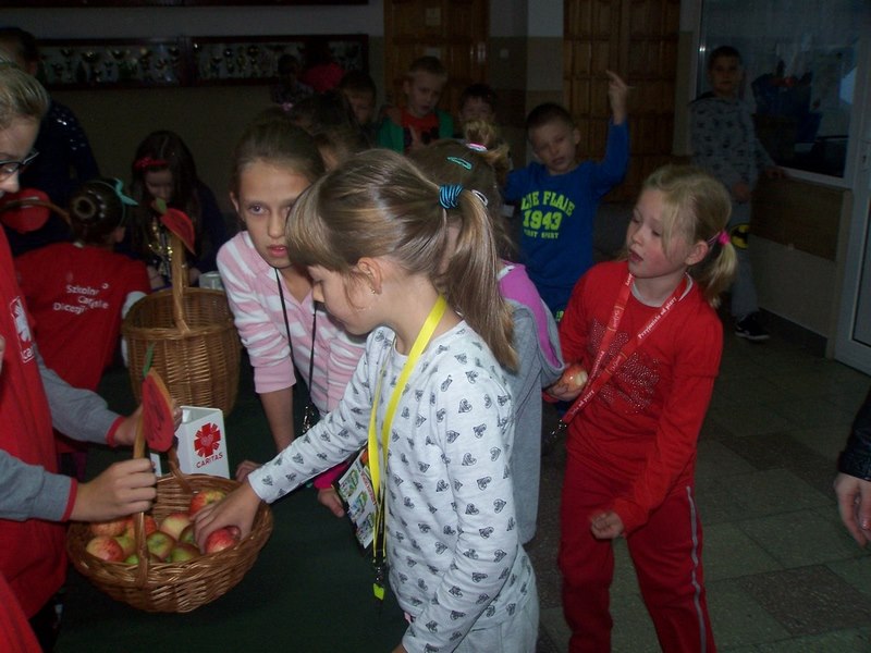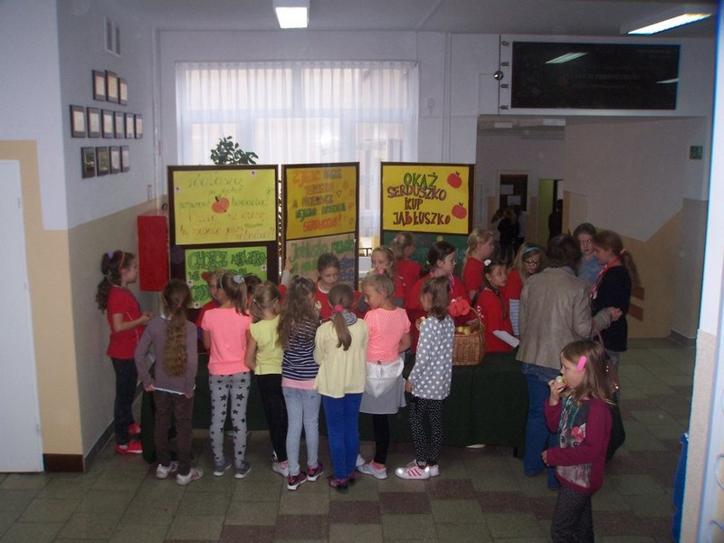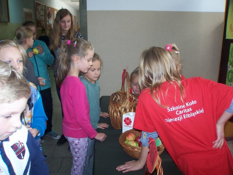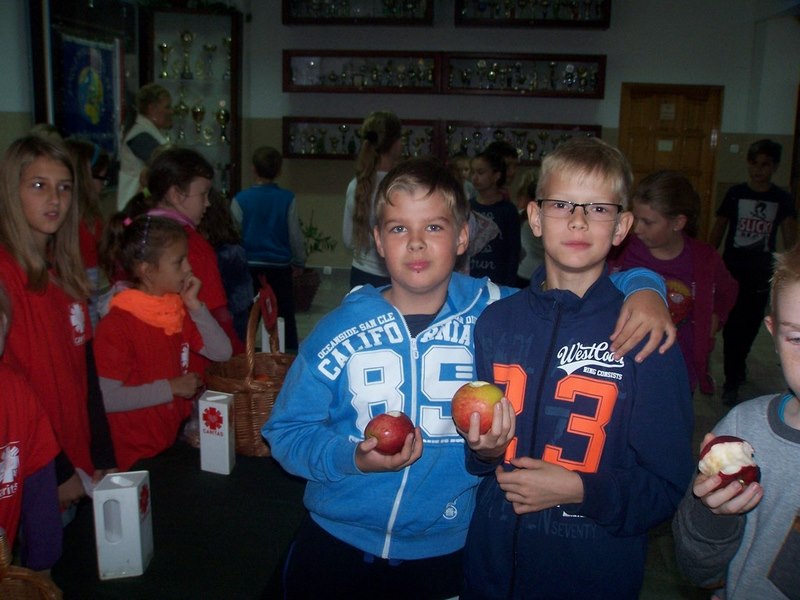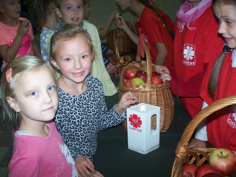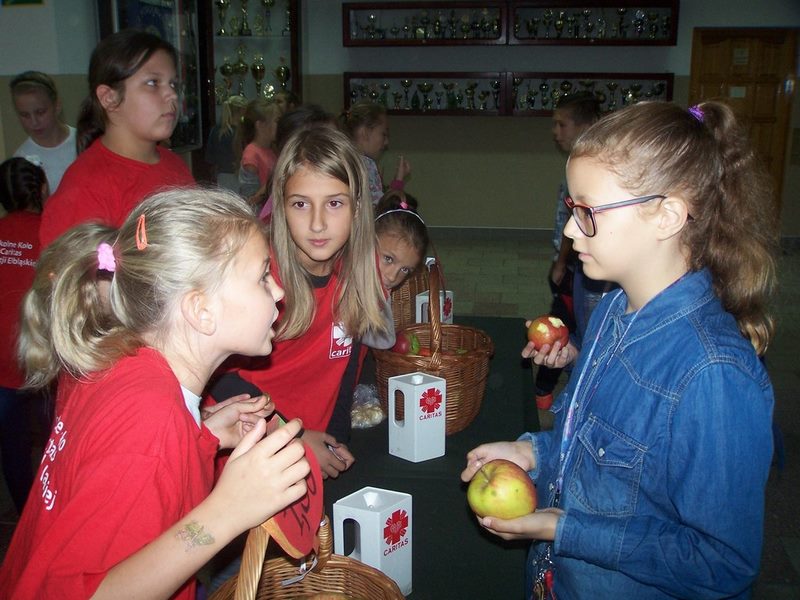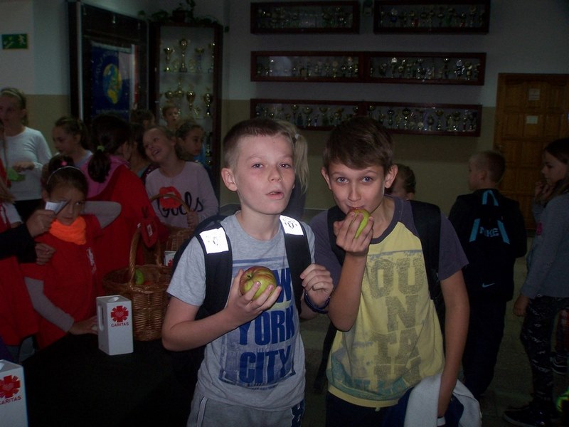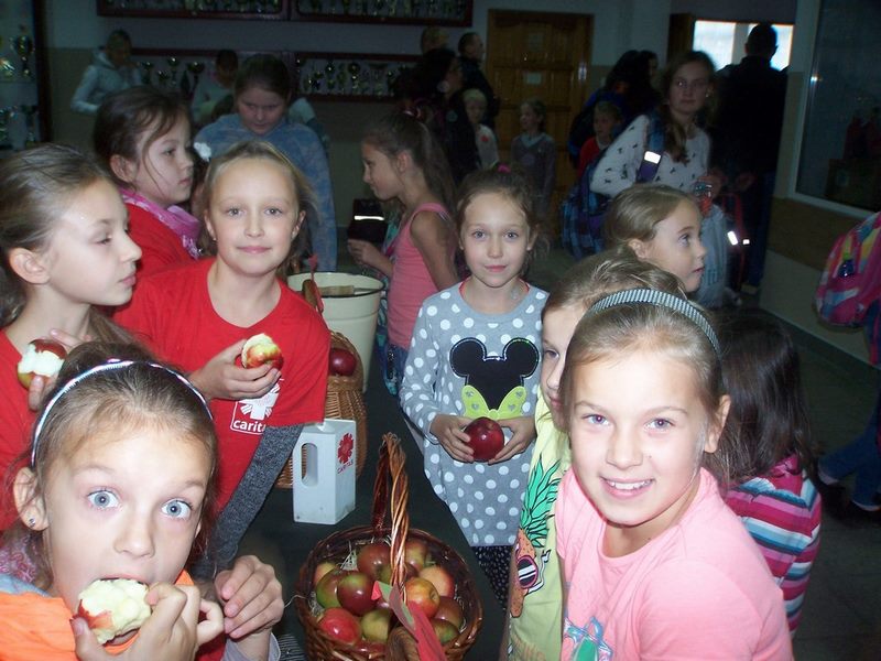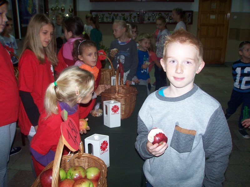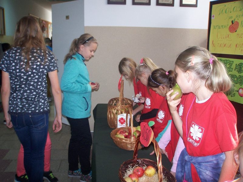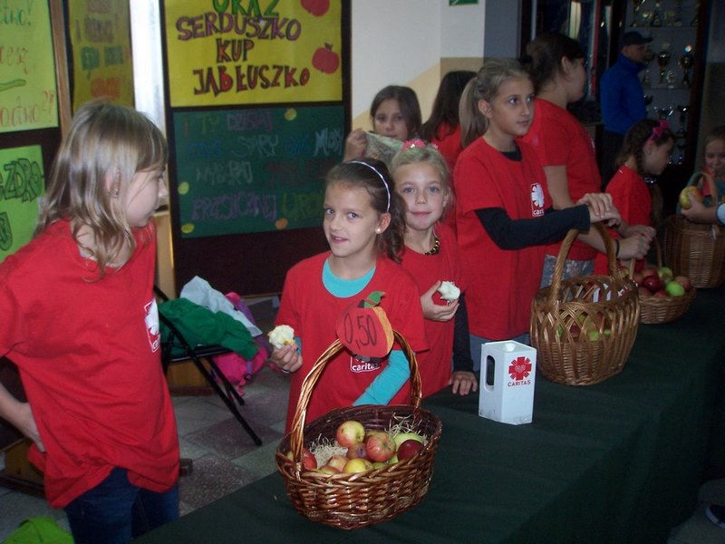 6 i 7 października 2015 r., podobnie jak w ubiegłych latach, dzieci ze Szkolnego Koła Caritas rozprowadzały w czasie przerw jabłka za symboliczną złotówkę w ramach akcji charytatywnej pt.: „Okaż serduszko – kup jabłuszko!” Nad całością przedsięwzięcia czuwały panie katechetki: Iwona Grubalska i Beata Jastrzębska.