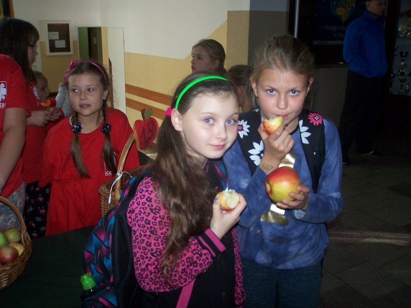 Dziękujemy serdecznie wszystkim rodzicom, uczniom, nauczycielom, pracownikom obsługi szkoły, którzy nabywali nasze jabłka. Jesteśmy bardzo wdzięczni szczególnie tym osobom, które płaciły więcej niż oczekiwaliśmy. Niektóre osoby wrzuciły bowiem do naszych puszek 10, a nawet 20 zł za jedno jabłuszko!