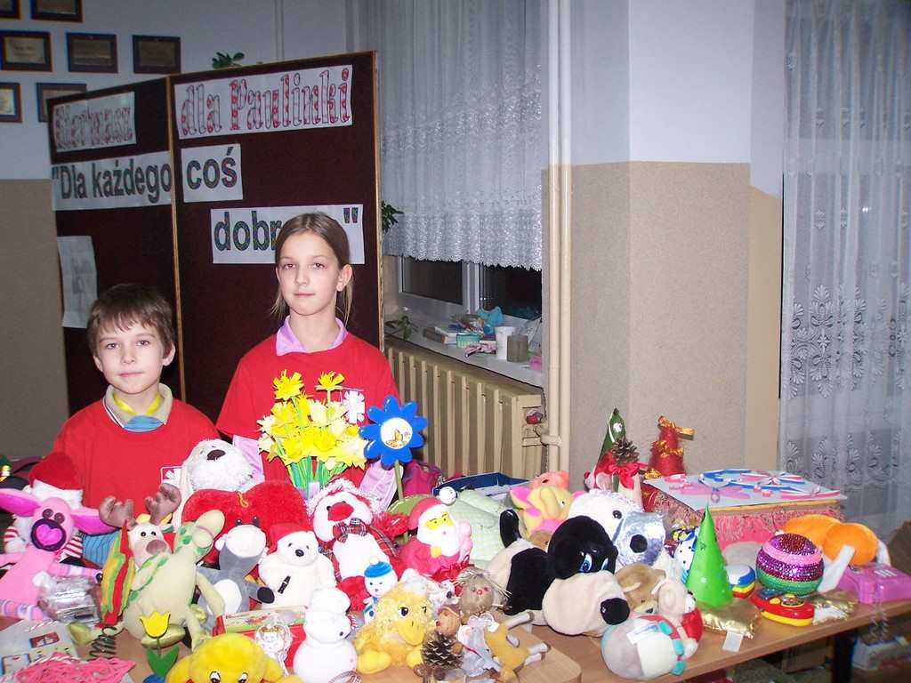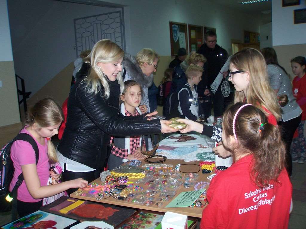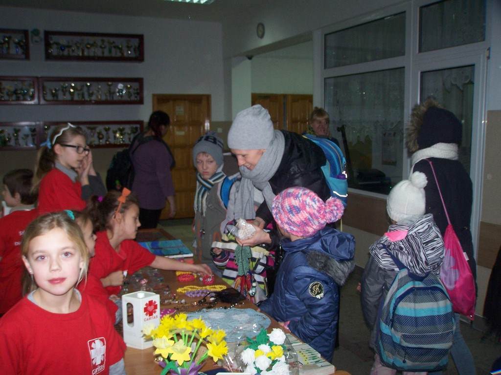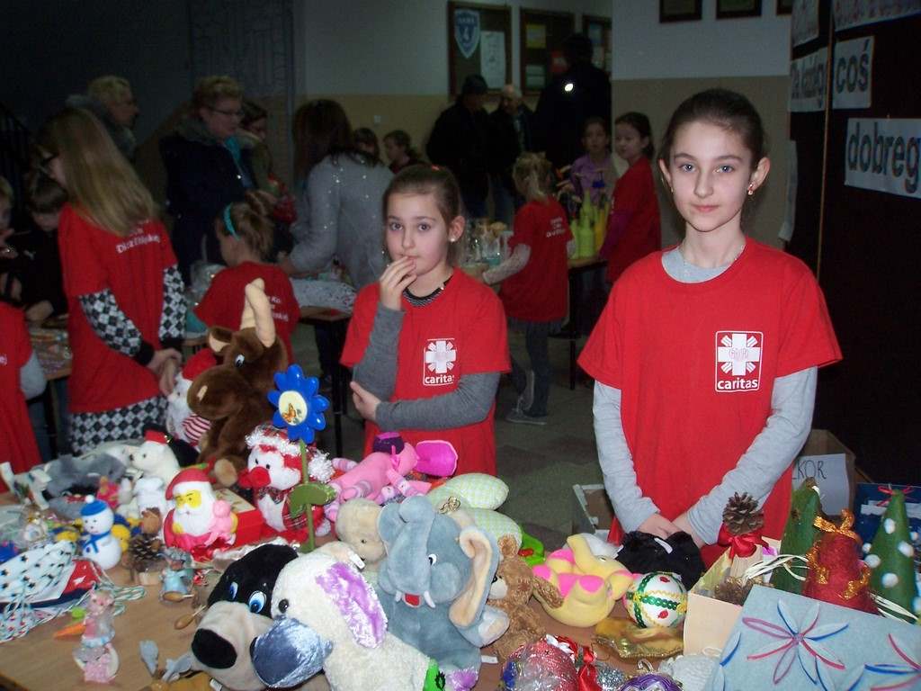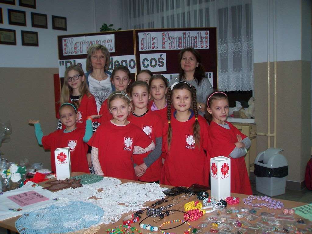 21 i 22 stycznia 2016 r. wolontariusze ze Szkolnego Koła Caritas, pod kierunkiem pań katechetek: Iwony Grubalskiej i Beaty Jastrzębskiej, zorganizowali kiermasz charytatywny „Dla każdego coś dobrego”. Dochód przeznaczony został na leczenie i rehabilitację uczennicy naszej szkoły - Paulinki, która została potrącona przez samochód. Pomysłodawcą akcji byli rodzice klasy III d wraz z wychowawcą – panią Sylwią Abramowską.