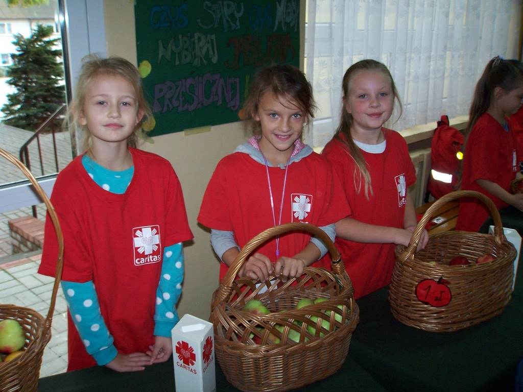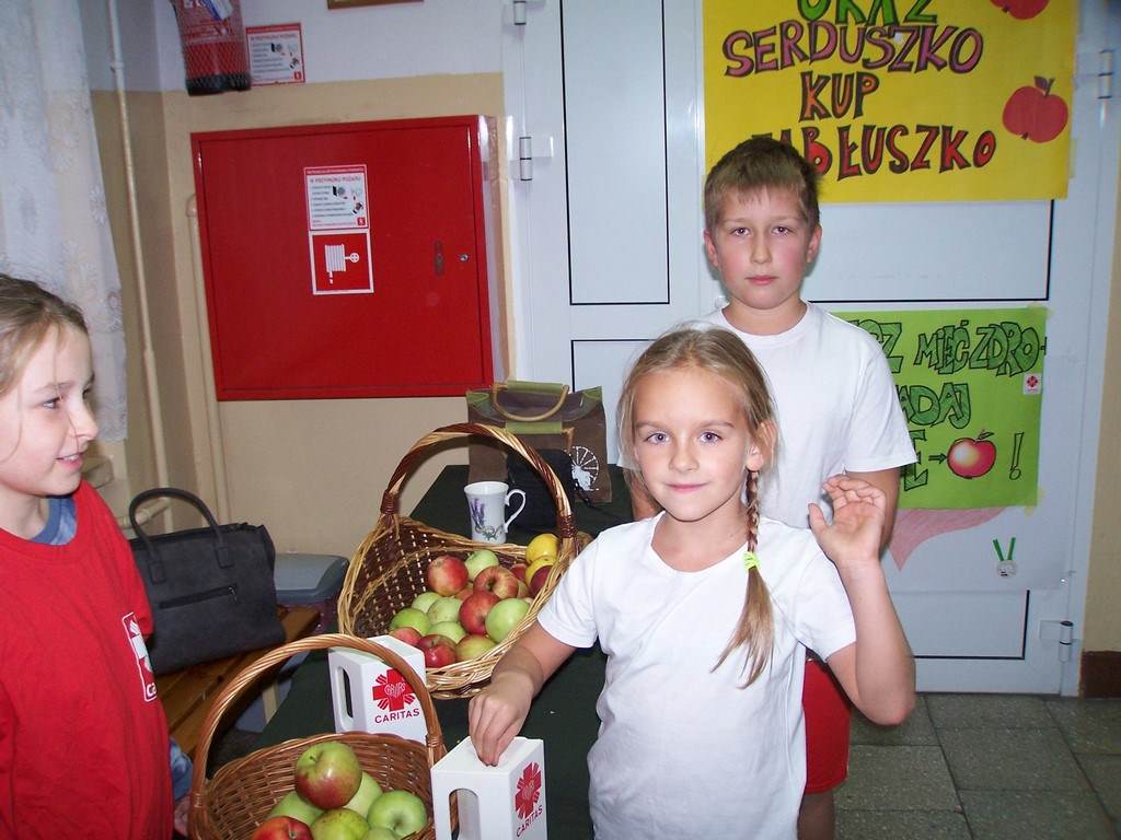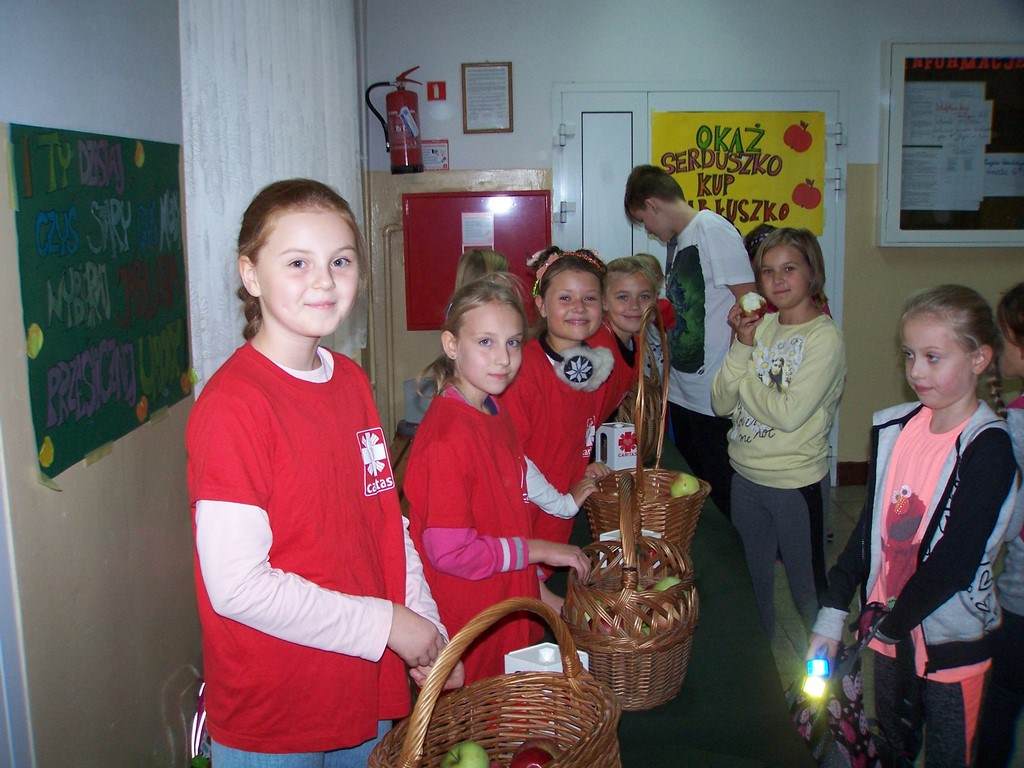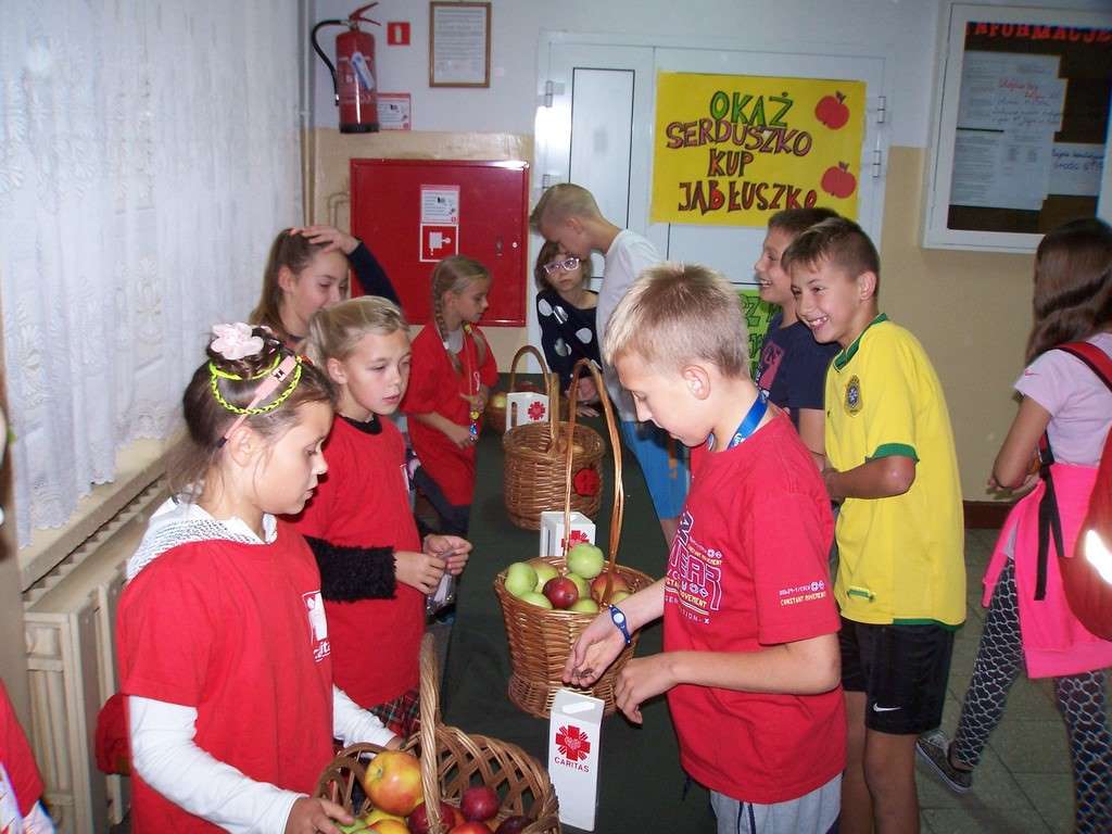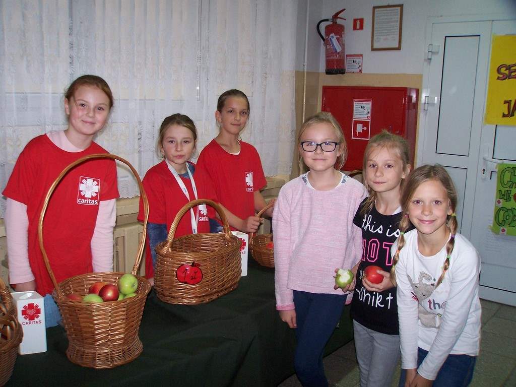 11 i 12 października 2016 r. odbyła się, już po raz szósty w naszej szkole, charytatywna akcja Szkolnego Koła Caritas pt.: „Okaż serduszko – kup jabłuszko!” . Uczniowie mogli nabyć za symboliczną złotówkę jabłko – dar serca dla potrzebujących. Nad całością przedsięwzięcia czuwali katecheci: pani Iwona Grubalska, pani Beata Jastrzębska oraz pan Sebastian Rynkowski.