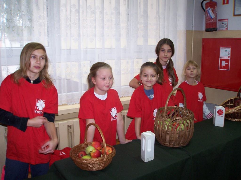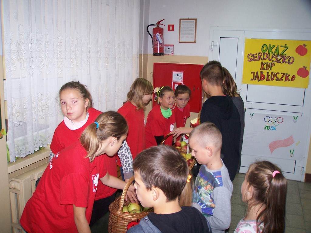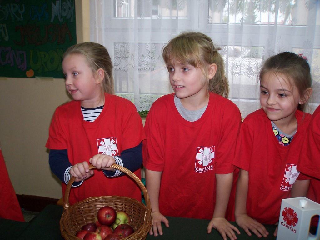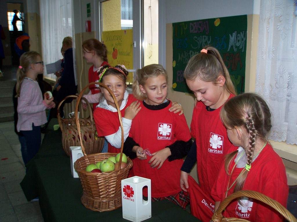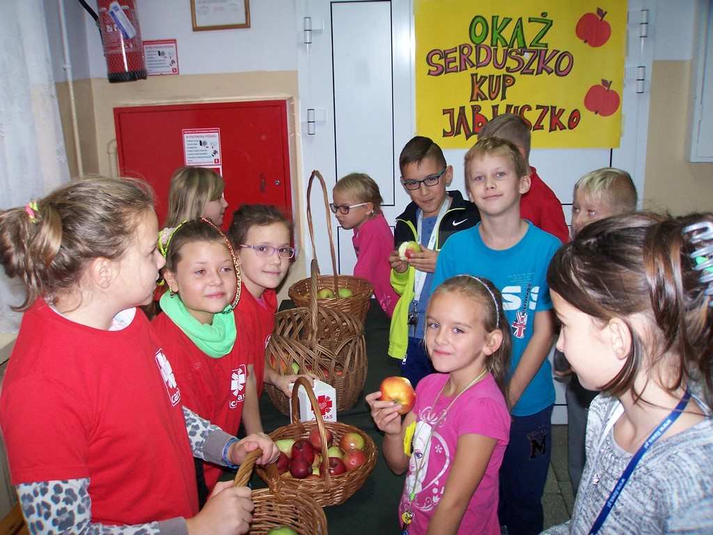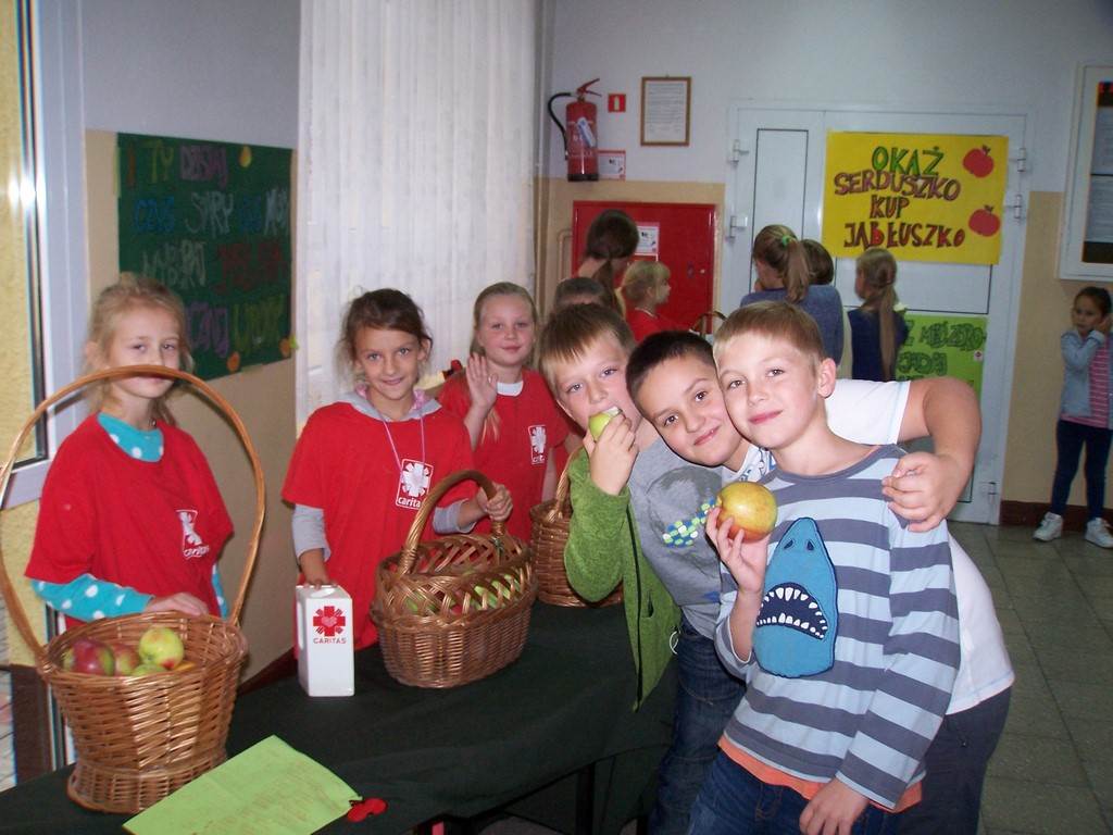 11 i 12 października 2016 r. odbyła się, już po raz szósty w naszej szkole, charytatywna akcja Szkolnego Koła Caritas pt.: „Okaż serduszko – kup jabłuszko!” . Uczniowie mogli nabyć za symboliczną złotówkę jabłko – dar serca dla potrzebujących. Nad całością przedsięwzięcia czuwali katecheci: pani Iwona Grubalska, pani Beata Jastrzębska oraz pan Sebastian Rynkowski.