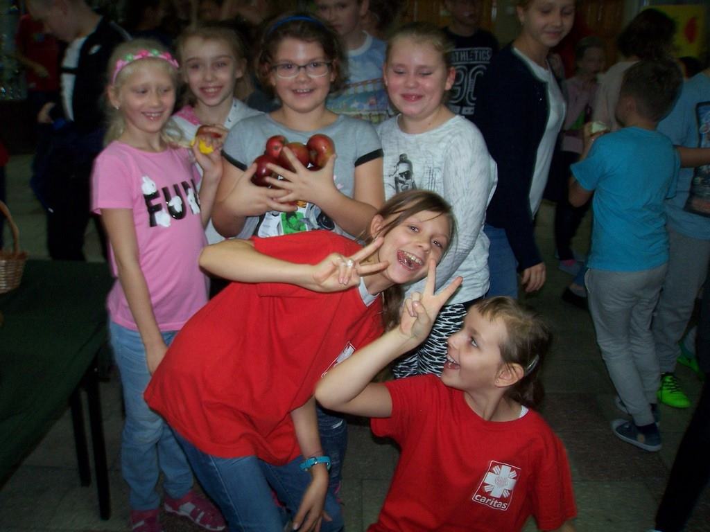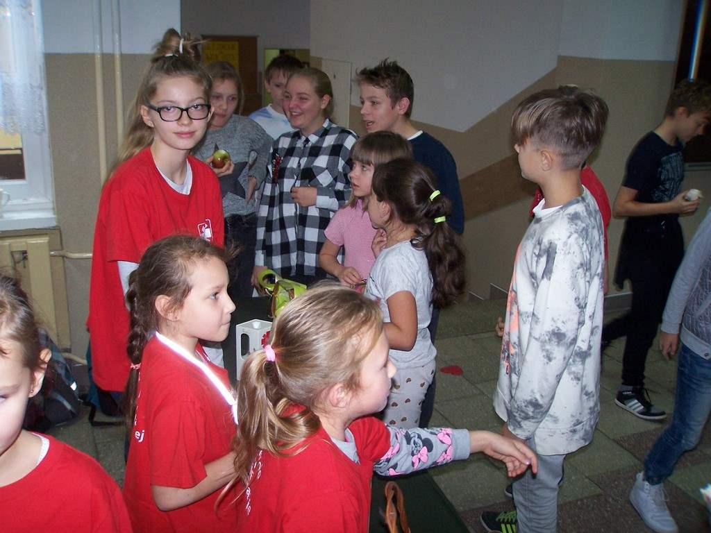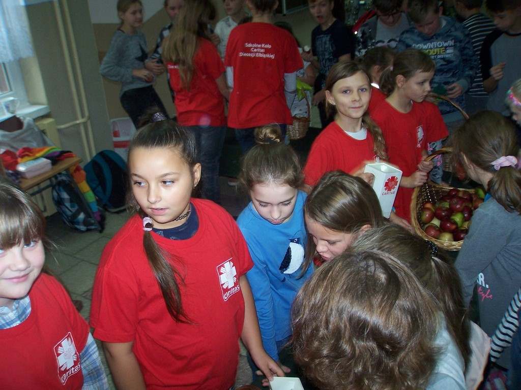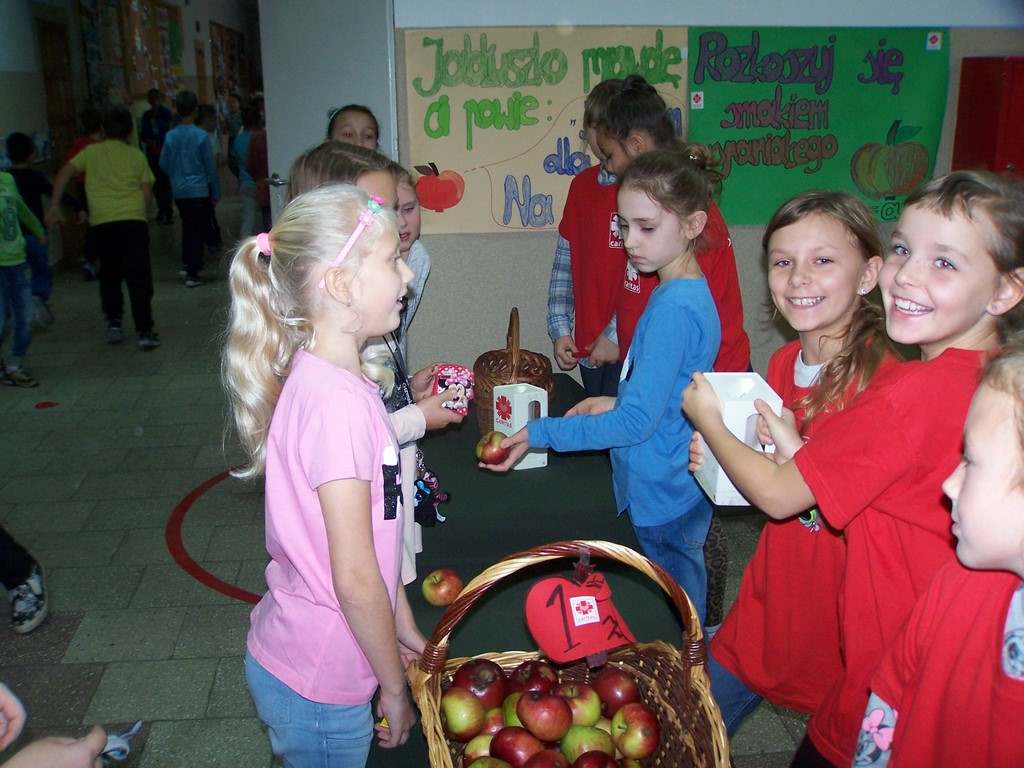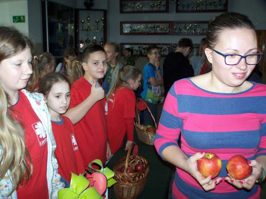 18 i 19 października 2017 r. wolontariusze ze Szkolnego Koła Caritas rozprowadzali w czasie przerw jabłka za symboliczną złotówkę w ramach akcji charytatywnej pt.: „Okaż serduszko – kup jabłuszko!” Nad całością przedsięwzięcia czuwały panie katechetki: Iwona Grubalska i Beata Jastrzębska.