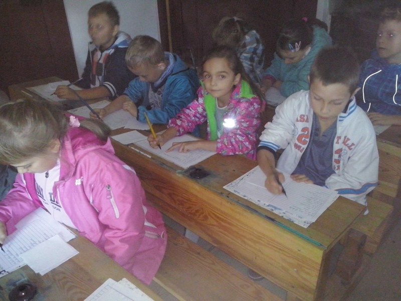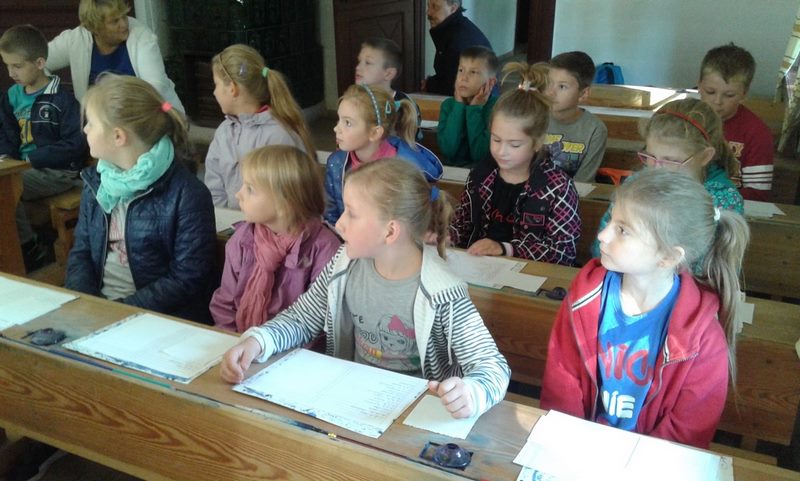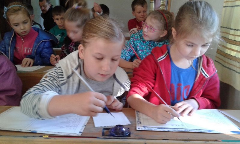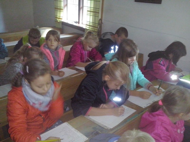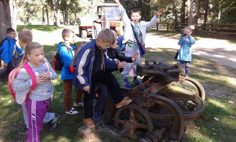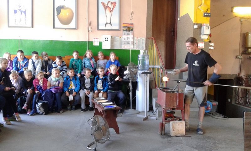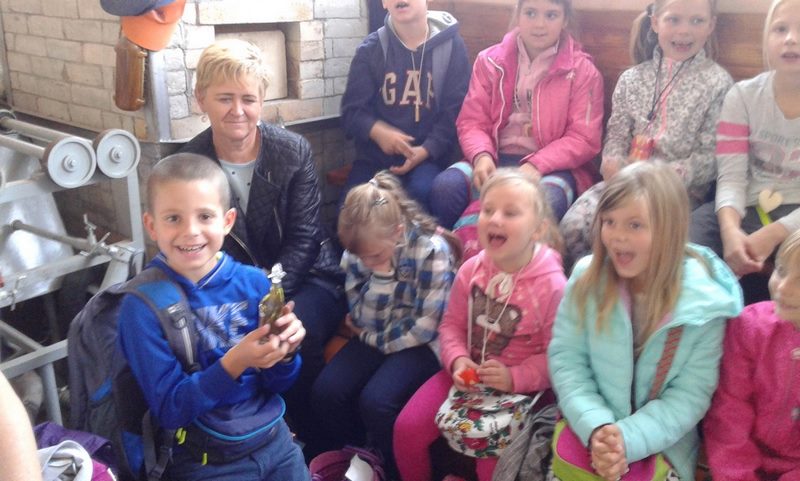 W dawnej szkole dzieci uczestniczyły w lekcji kaligrafii, podczas której pisały stalówkami zanurzanymi w atramencie z kałamarza. Zobaczyły też kryty strzechą kościółek, kuźnię, młyn wodny, olejarnię, a w górze dostojne skrzydła drewnianych wiatraków. Następnie udały się do Huty Szkła Artystycznego, gdzie były świadkami powstawania pięknych wyrobów ze szkła. Pełne niesamowitych wrażeń, ze wspaniałymi pamiątkami, wróciły szczęśliwie do swoich domów.