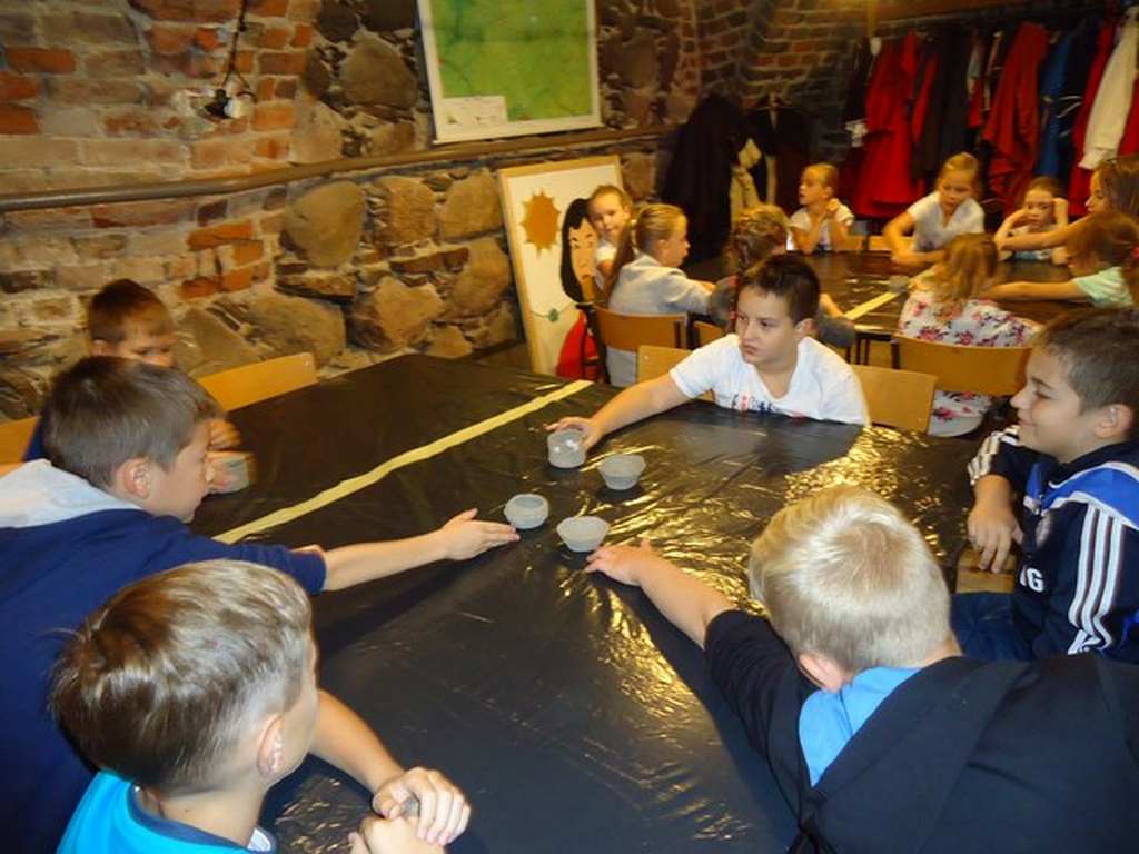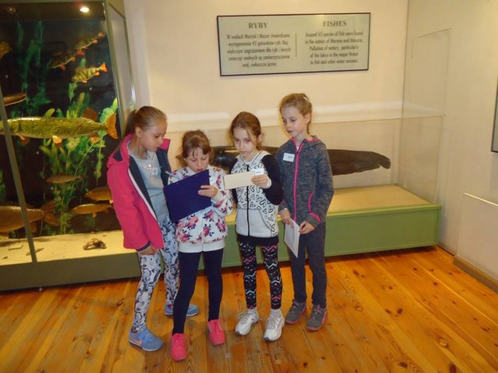 Grupy zdobywały punkty za zadania, otrzymały również nagrody za swoją pracę. Z wielkim zaciekawieniem obejrzały eksponaty na wystawach. Pobyt w Olsztynie uczniowie zakończyli zabawą w Warmiolandii. Dwie godziny świetnej zabawy bardzo szybko minęły. Dzieci wróciły do domów pełne wrażeń.
