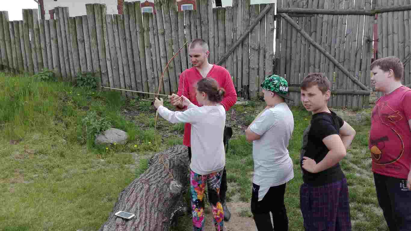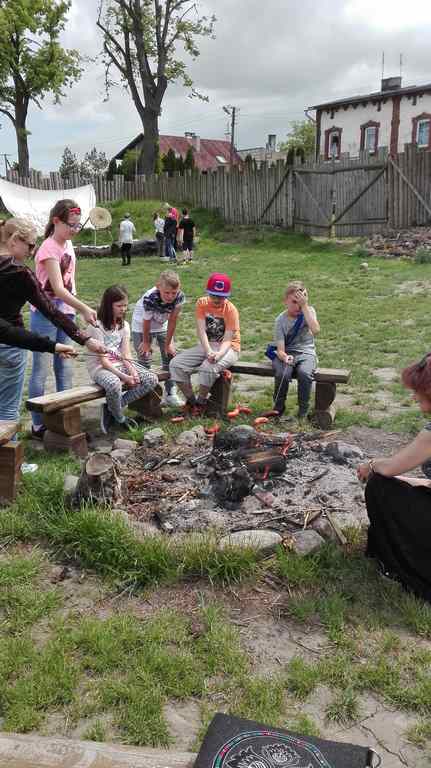 Następnie dzieci uczestniczyły w warsztatach rzemiosł i konkurencjach sprawnościowych. To atrakcyjne spotkanie z historią zakończyła wspólna biesiada przy ognisku z kiełbaskami.