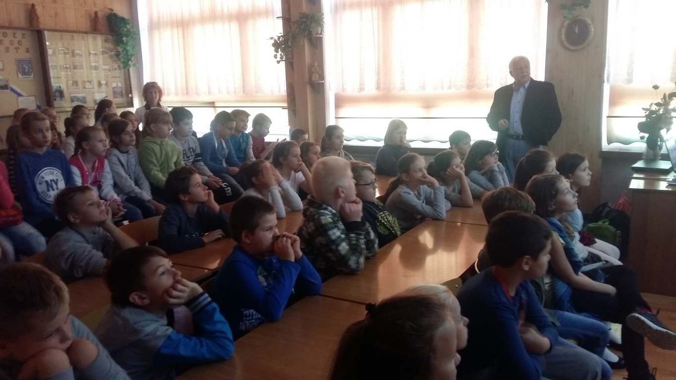 W tym roku szkolnym wychowankowie klas IV wraz z wychowawcami uczestniczyli w spotkaniu z podróżnikiem i jednocześnie byłym dyrektorem SSP 4 – panem Czesławem Olszewskim.