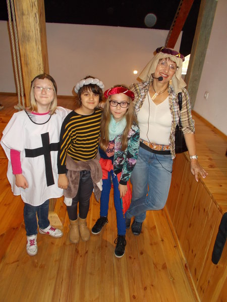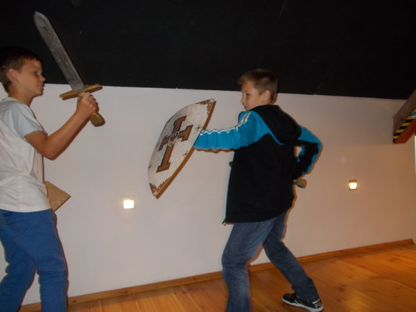 Zwiedzaniu towarzyszyło brzmienie muzyki średniowiecznej, oczy napawały się widokiem strojów, uzbrojenia, narzędzi codziennego użytku z epoki, dzięki czemu ciekawość młodych wycieczkowiczów była pobudzona i aktywnie rozwijana.