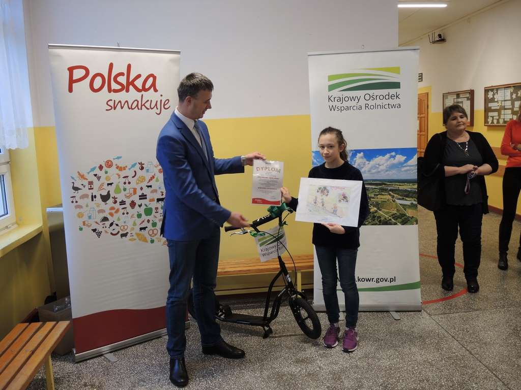 Uczennica kl.6c Wiktoria Koprowska zajęła III miejsce w konkursie plastycznym „Jemy kolorowo-żyjemy zdrowo”. Organizatorem konkursu był Wydział Rozwoju Rynków Rolnych - Oddział Terenowy Krajowego Ośrodka Wsparcia Rolnictwa w Olsztynie.