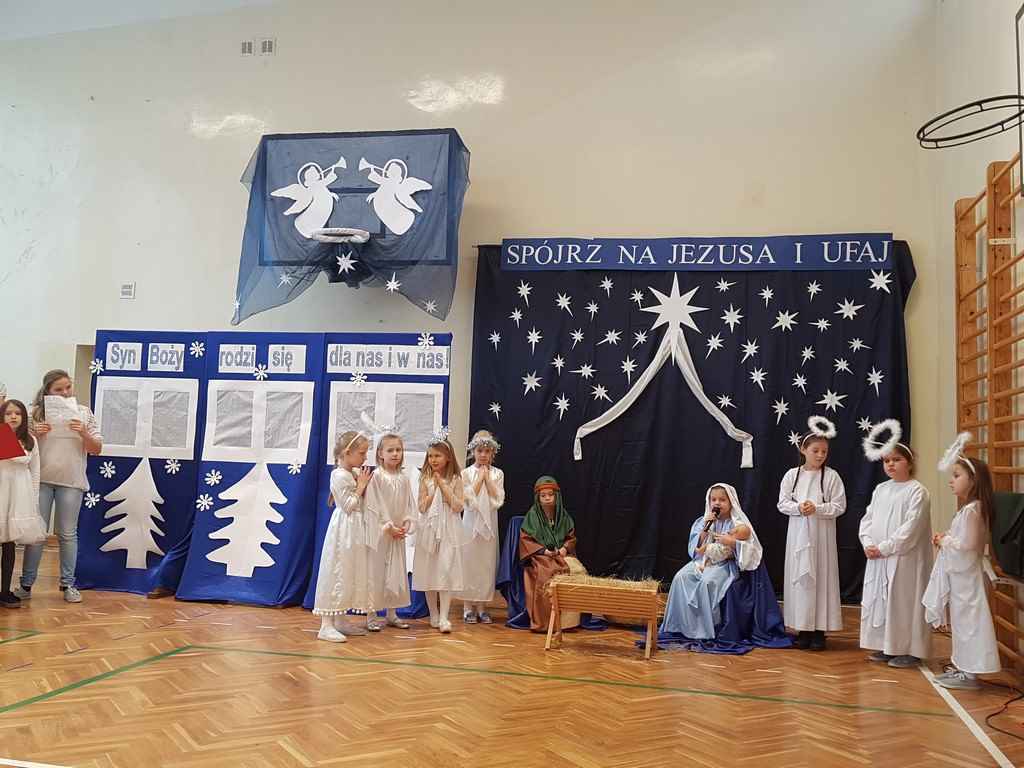 Jak co roku, w ostatnim dniu nauki przed świętami Bożego Narodzenia, wszyscy uczniowie obejrzeli jasełka. Tym razem wystąpili w nich najmłodsi uczniowie naszej szkoły: dzieci z klasy I b oraz II b i II c.