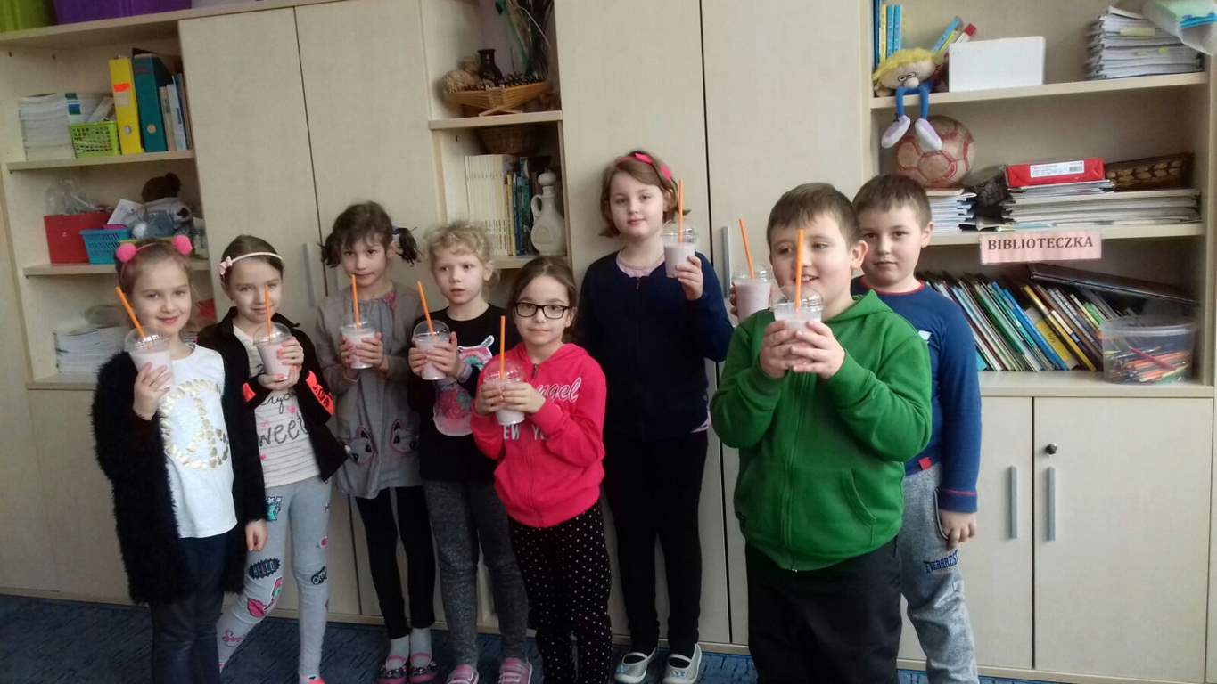 Grupa dzieci z klasy 1c uczestniczyła w poniedziałek 22 stycznia i we wtorek 23 stycznia w zajęciach zorganizowanych w czasie ferii zimowych na terenie szkoły. Pierwszego dnia zajęcia miały charakter artystyczny. Dzieci malowały farbami martwą naturę - bukiet kwiatów. Powstały piękne i ciekawe prace. Drugi dzień zajęć był pełen doznań kulinarnych. Dzieci piły zrobiony w klasie koktajl mleczko - owocowy i malinową herbatkę, jadły faworki przyniesione przez mamusie. Pozostałą część zajęć dzieci spędziły bawiąc się i grając w różne gry. Dzieci były zadowolone z tak spędzonego czasu w szkole.