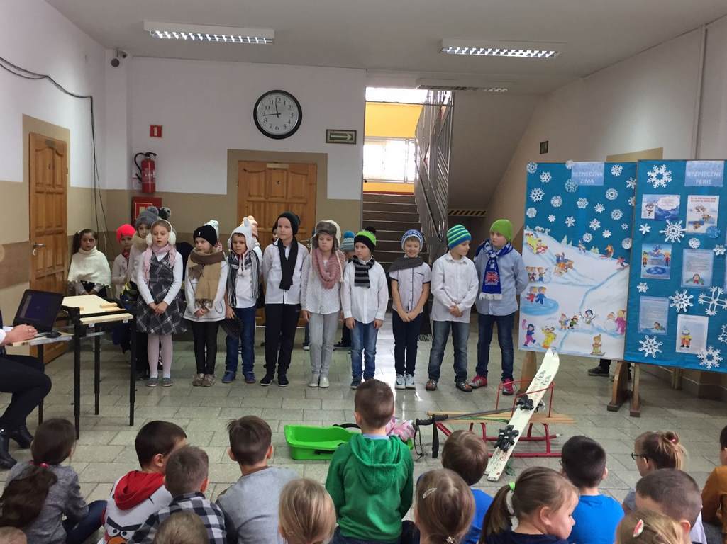 Zasady bezpieczeństwa podczas ferii zimowych przedstawiła uczniom klas I-III, klasa IIId wraz z wychowawcą. Krótkie przedstawienie pod tytułem "Dreszczyk emocji" przypomniało wszystkim zasadę, że wspaniała zabawa, to bezpieczna zabawa.