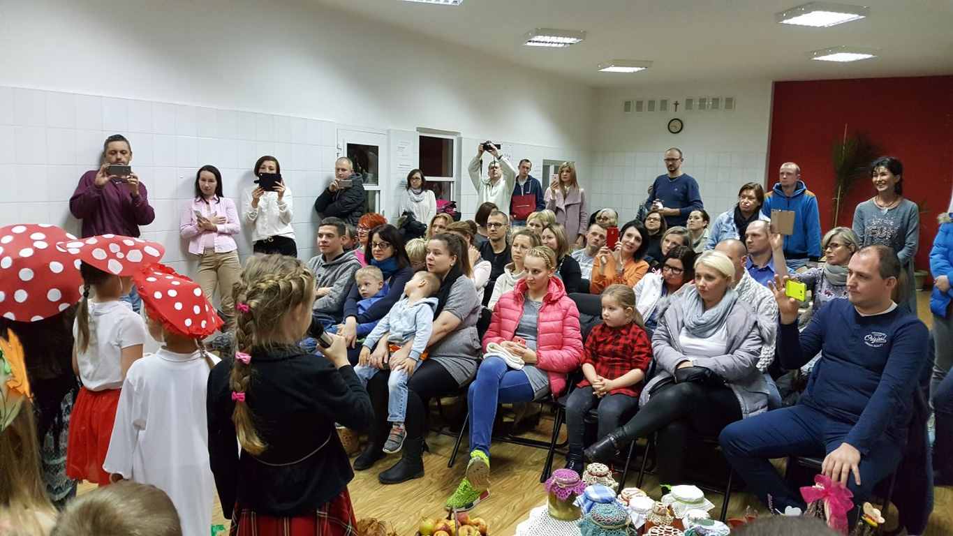 Uczniowie klas II a i III c przygotowali program artystyczny pt. „Spotkanie z Panią Jesienią”, na który składały się scenki, wiersze i piosenki o tematyce związanej z aktualną porą roku. Dzieci zaprezentowały się w przepięknych jesiennych strojach na tle darów jesieni z pól, lasów i ogrodów.