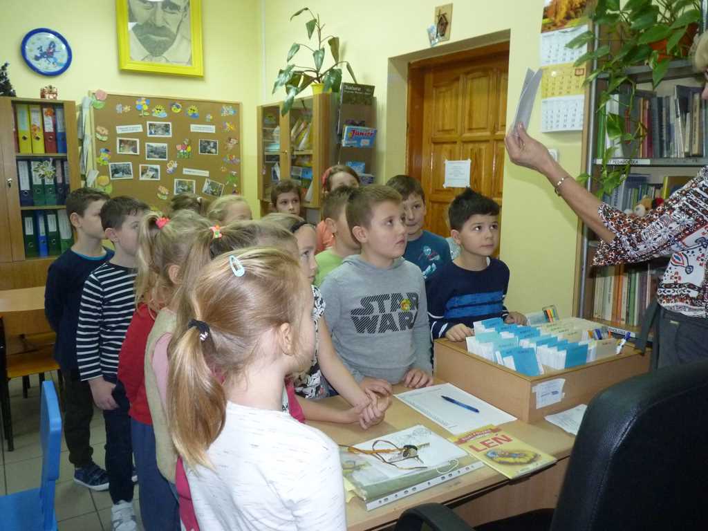 Pierwsze spotkanie z biblioteką szkolną to wyjątkowa uroczystość a pierwsze wypożyczenie książki powinno na długo pozostać w pamięci dziecka. Nic więc dziwnego, że ślubowanie przyszłych czytelników z klas I a, I b i I c, które odbyło się 3 listopada 2017 r. było dla nich ogromnym przeżyciem. Głównym celem uroczystości było zachęcenie najmłodszych uczniów do częstych odwiedzin w bibliotece szkolnej i wypożyczania książek oraz rozwijania umiejętności czytania. Pasowanie na czytelnika to oficjalne przyjęcie uczniów do grona czytelników biblioteki. Zanim jednak uczniowie złożyli przyrzeczenie musieli wykazać się znajomością nazw owoców i warzyw, ich wartościami odżywczymi dla małych organizmów. Z tym poradzili sobie na szóstkę. Następnie kolorowali wzory owoców i warzyw, którymi wypełnili kosz przyniesiony przez panie z biblioteki.