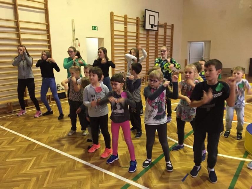 "Aktywna czwórka" na wesoło - udział w zajęciach wzięli uczniowie z klas 1a i 7a.