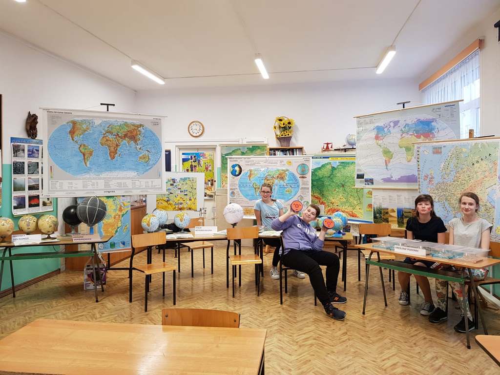 Podczas dni otwartych prezentowaliśmy przyszłym uczniom i ich rodzicom zasoby dydaktyczne z geografii. Największym zainteresowaniem cieszyły się globusy z odkrywcami i rozmieszczeniem zwierząt na kuli ziemskiej oraz wulkan.